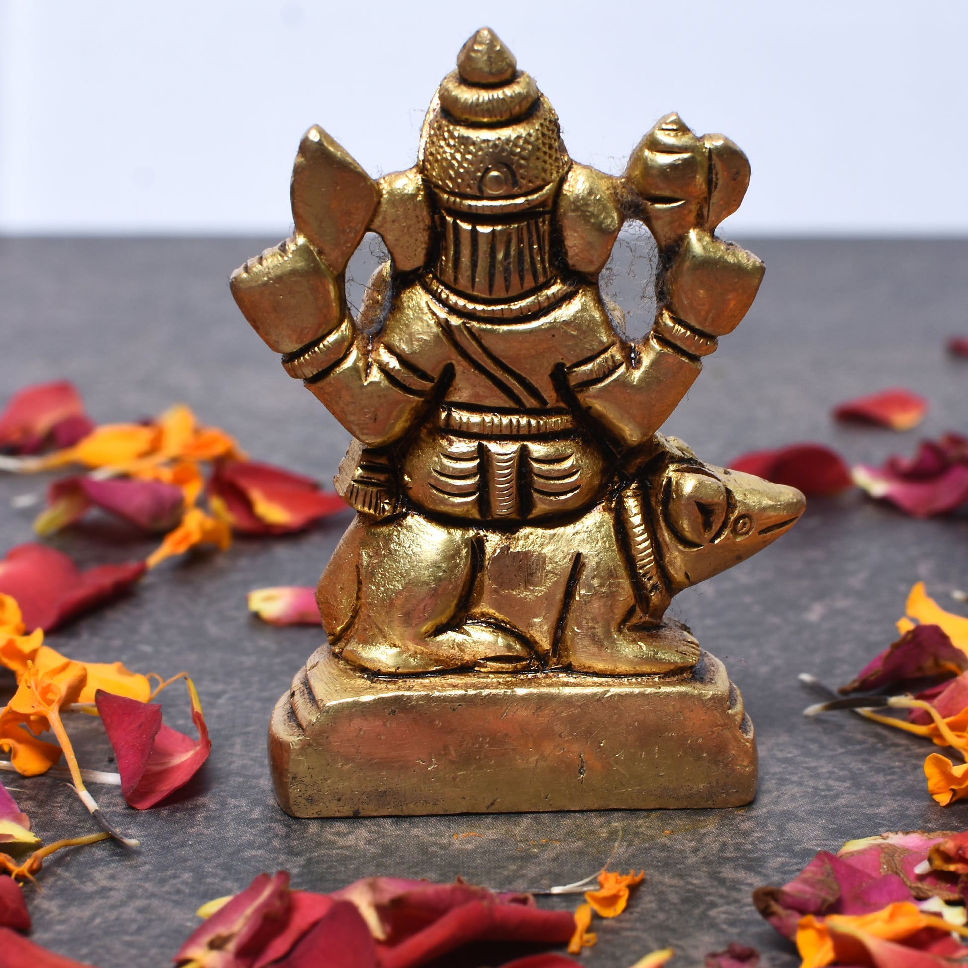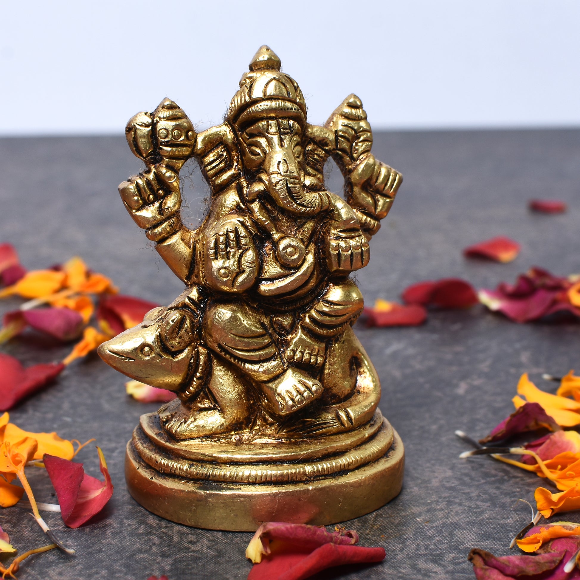 Ganesh Sitting On Mouse On Rd. Base (2.5 In)