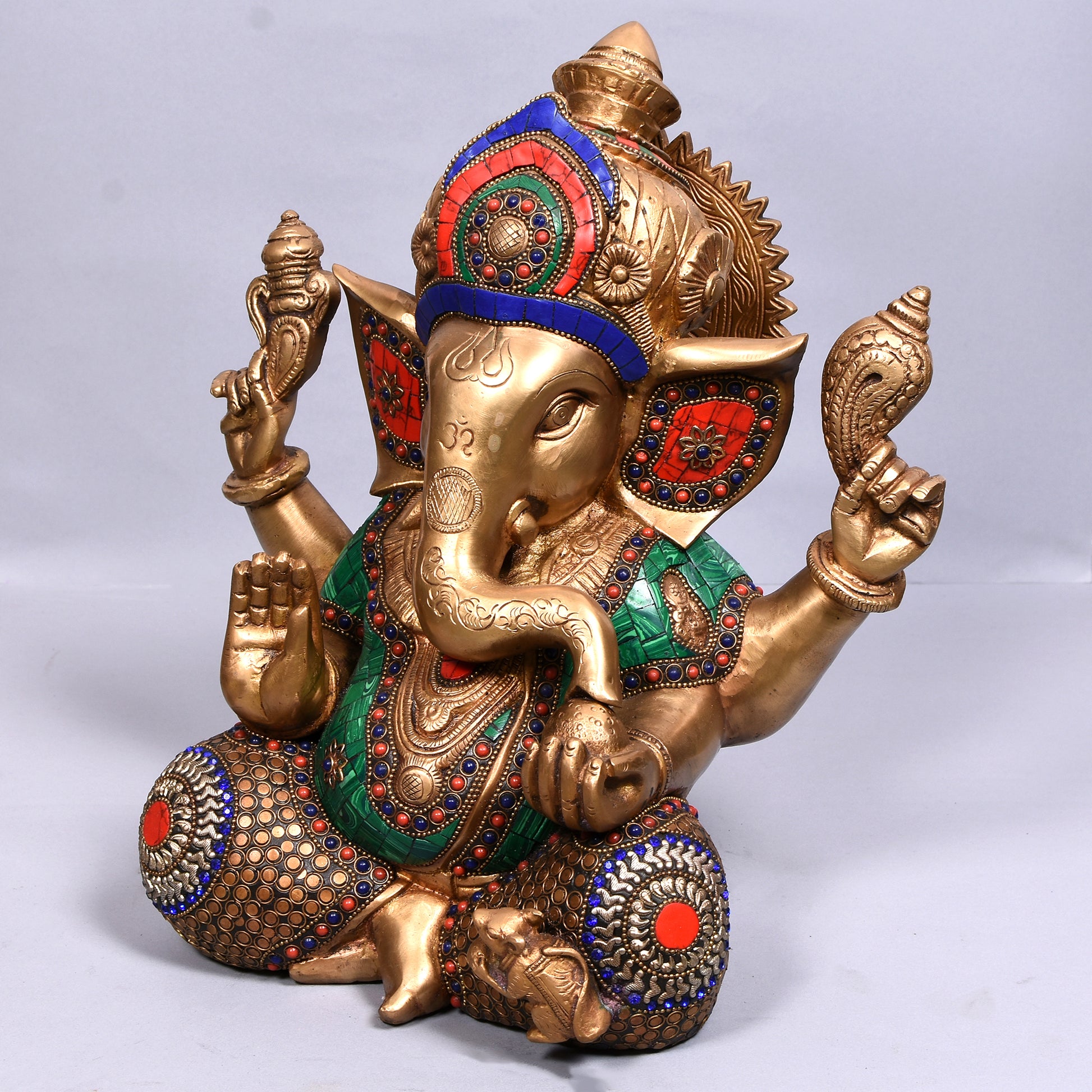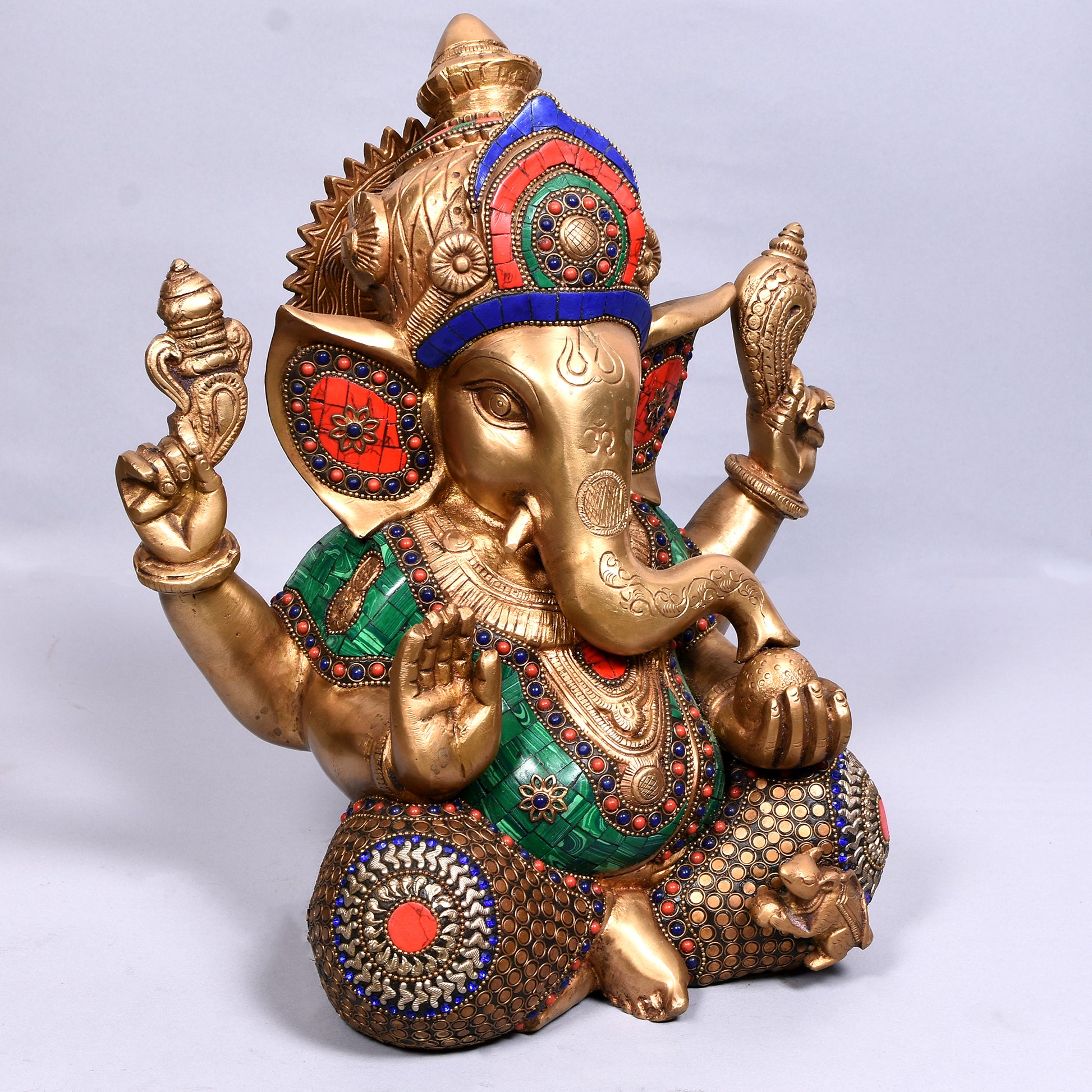 Ganesh Carved With Big Ears & Ring (12 In)