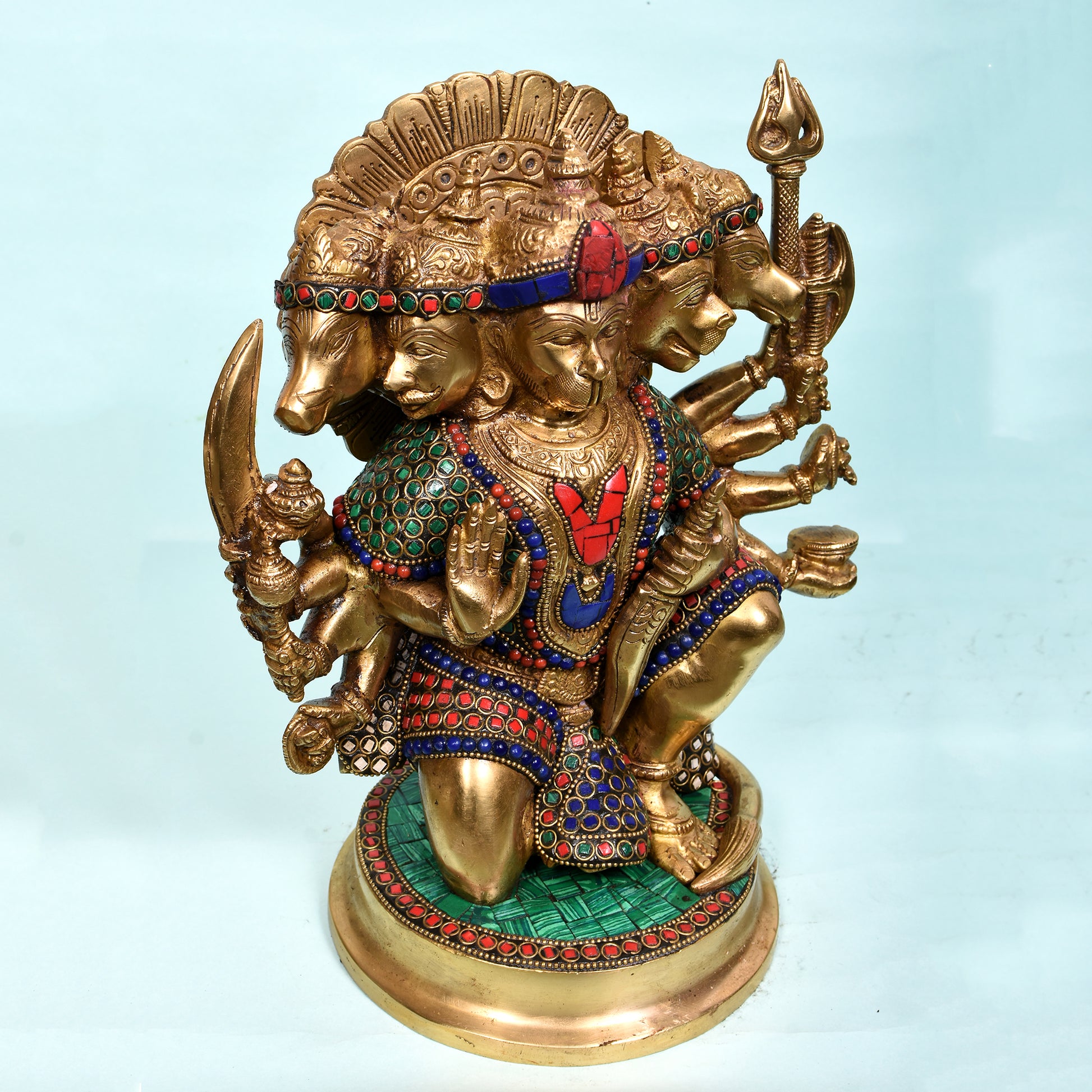 Hanuman Sitting With 5 Faces On Rd. Base (11 In)