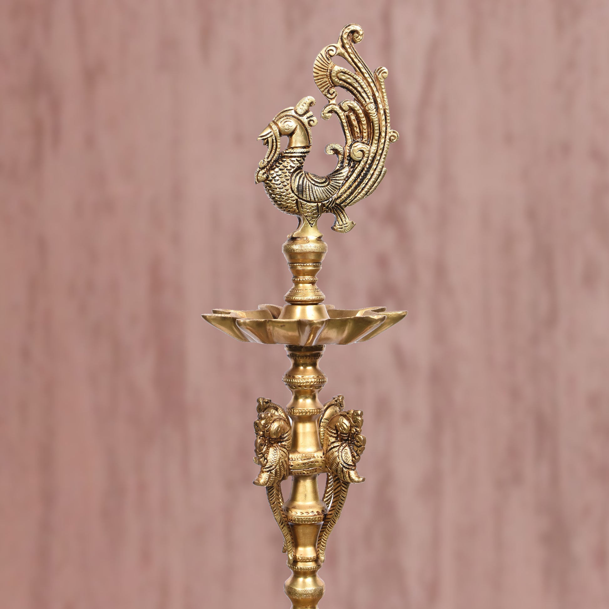 Light up your space with the timeless elegance of our 33-inch Peacock Oil Lamp. This stunning piece is more than just a lamp—it’s a work of art, inspired by the majestic beauty of the peacock.