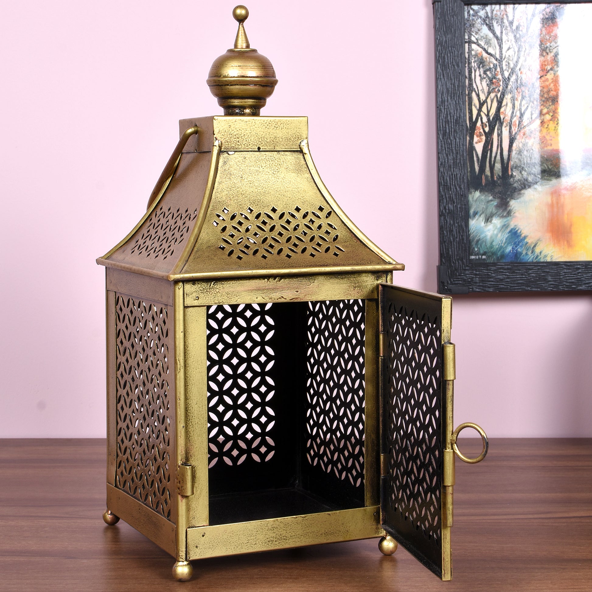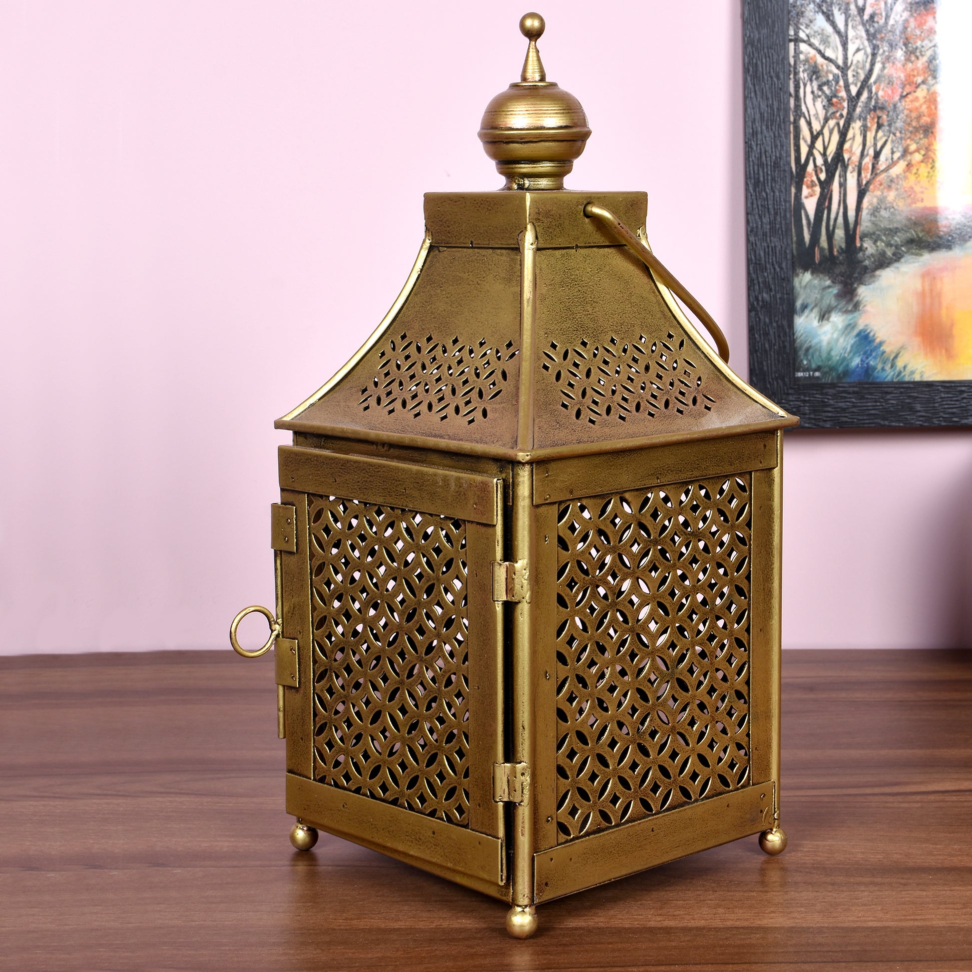 Illuminate your home with a touch of classic, rustic elegance. This 14-inch Iron Lantern is a beautifully crafted piece designed to add warmth and ambiance to any setting. Made from durable, high-quality iron, its sturdy construction and timeless design make it a versatile addition to your decor. Whether you place it on a mantel, use it as a centerpiece for your dining table, or let it cast a welcoming glow on your patio, this lantern is a perfect blend of style and substance. Simply add a pillar candle or an LED light to transform your space with a soft, inviting radiance.