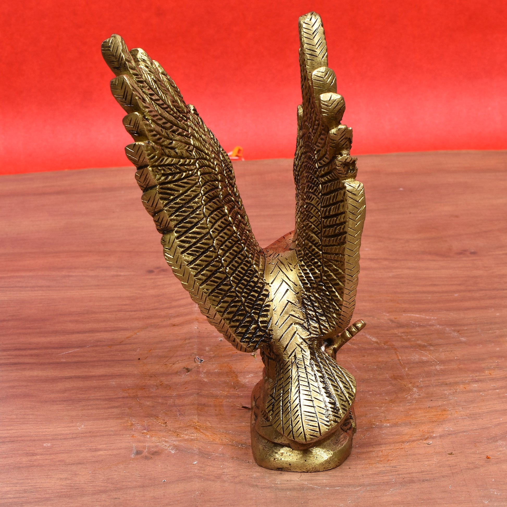 Crafted with high-quality material (often designer resin or similar casting medium) and finished with a rich, lasting golden tone, this sculpture is an ideal accent for a home office, study, mantlepiece, or as a distinguished corporate award or commemorative trophy. The intricate detailing, from the texture of the feathers to the powerful stance, showcases superior craftsmanship.