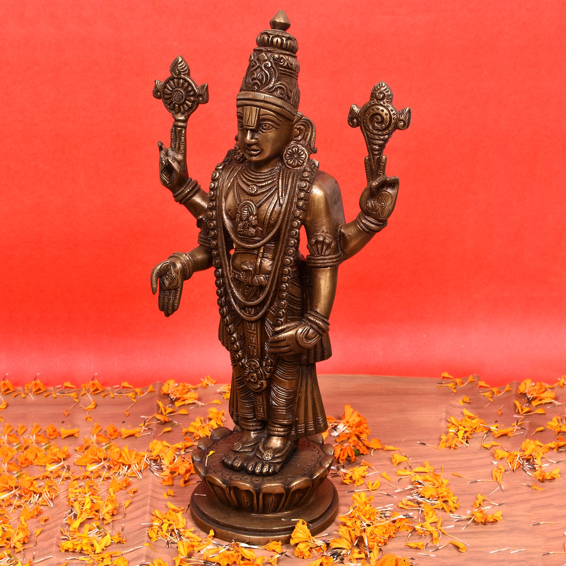 Invite divine grace and eternal blessings into your home with this exquisite 14-inch statue of Lord Balaji (Sri Venkateswara), the merciful preserver of the universe in the Kali Yuga. This statue masterfully captures the iconic form of the Lord, revered as the wish-fulfilling deity of the Seven Hills of Tirumala.