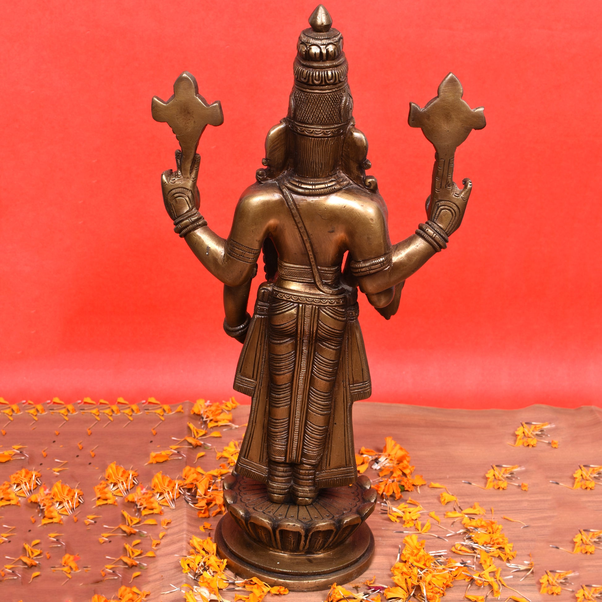 Posture & Base: Standing majestically on a traditional Double Lotus (Padma) Base and a round pedestal.