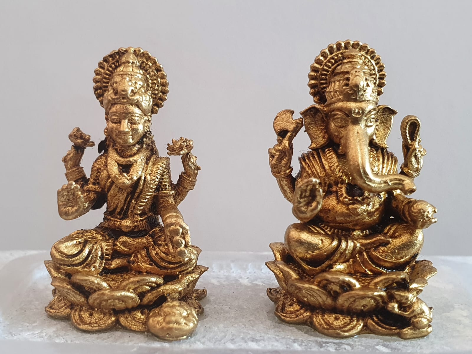 Perfectly sized at approximately 3 x 2 inches, this compact idol is ideal for placing in your home temple (mandir), on an office desk, car dashboard, or as an elegant accent for any small space. It makes a thoughtful and auspicious gift for housewarmings, Diwali, weddings, business openings, or any special occasion, bringing divine blessings and cultural charm.