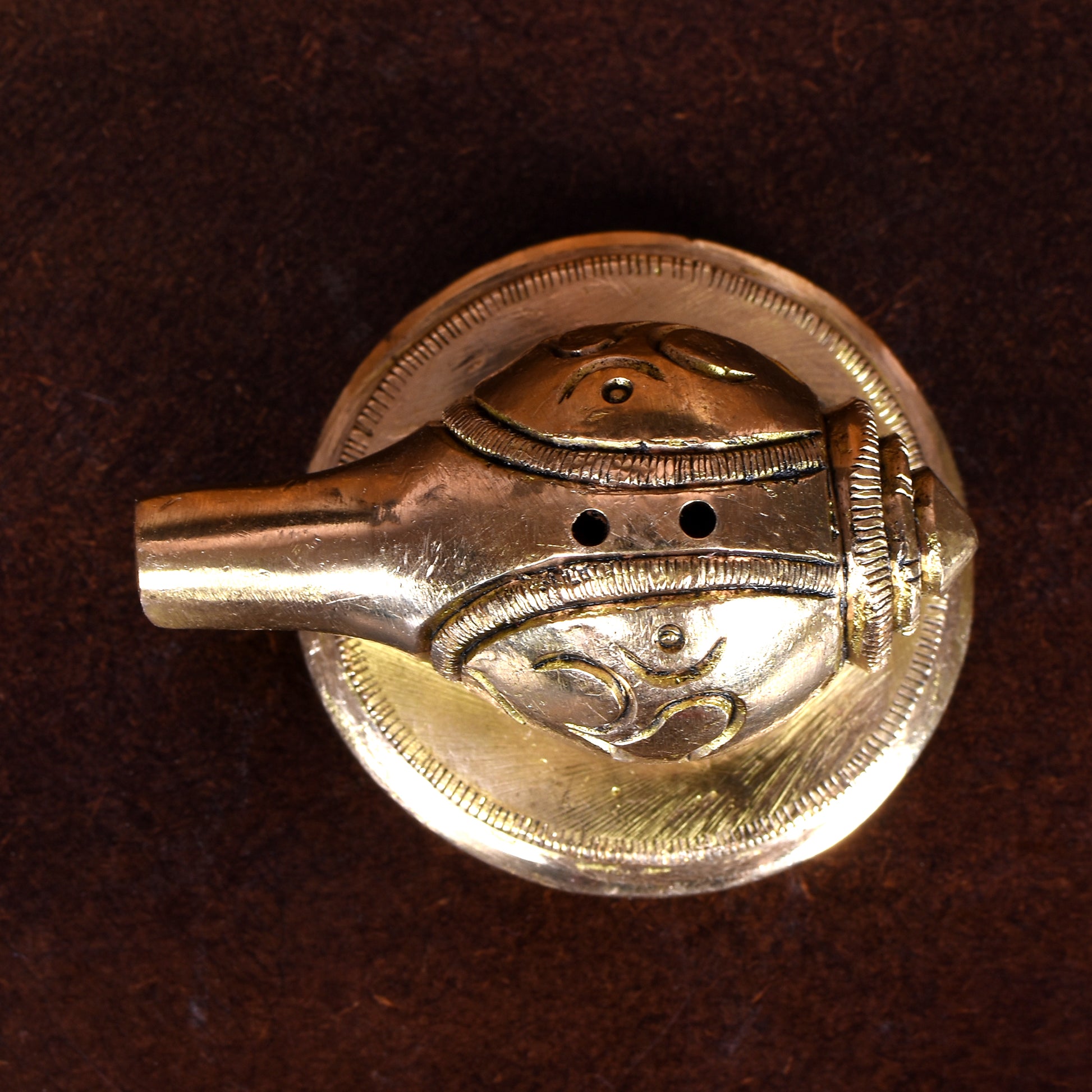 Elevate your ritual space with this exquisitely crafted mini incense holder. Made from solid brass for durability and weight, this compact 1.5-inch holder features a polished finish and is accented with a white gold-toned shank (or central pin/socket). The two-tone metal design provides a modern and luxurious twist on a traditional accessory, making it a sophisticated piece of decor even when not in use.