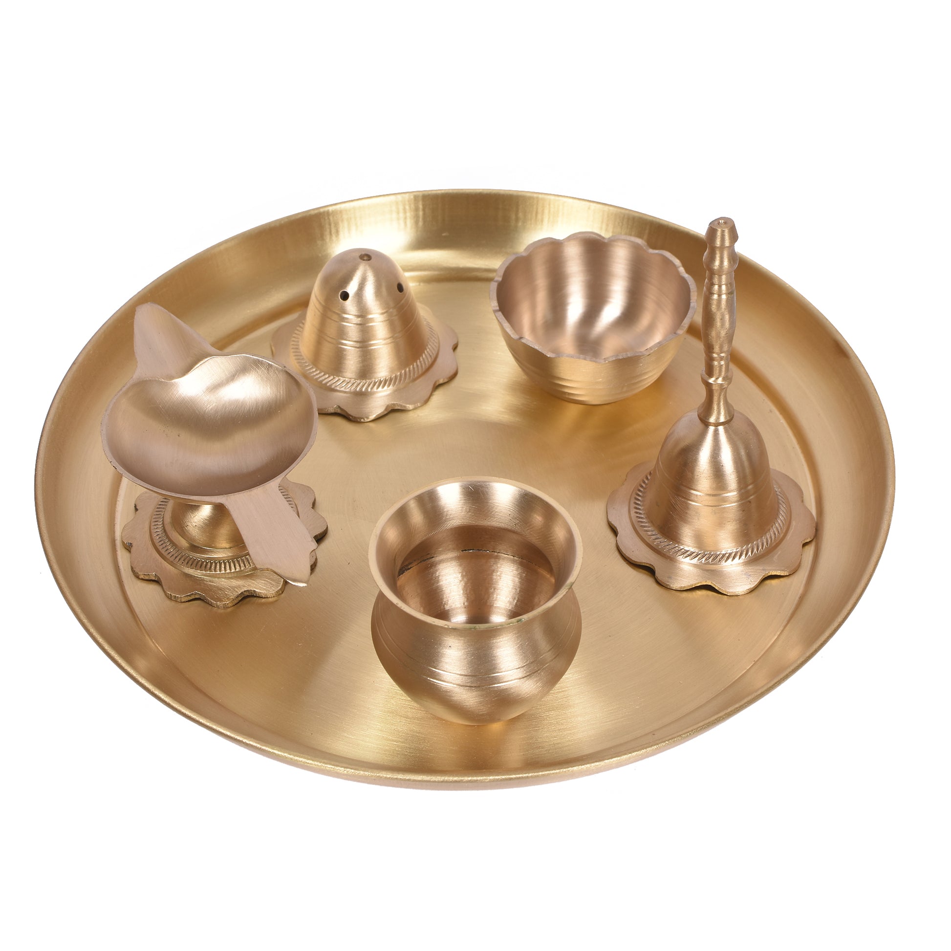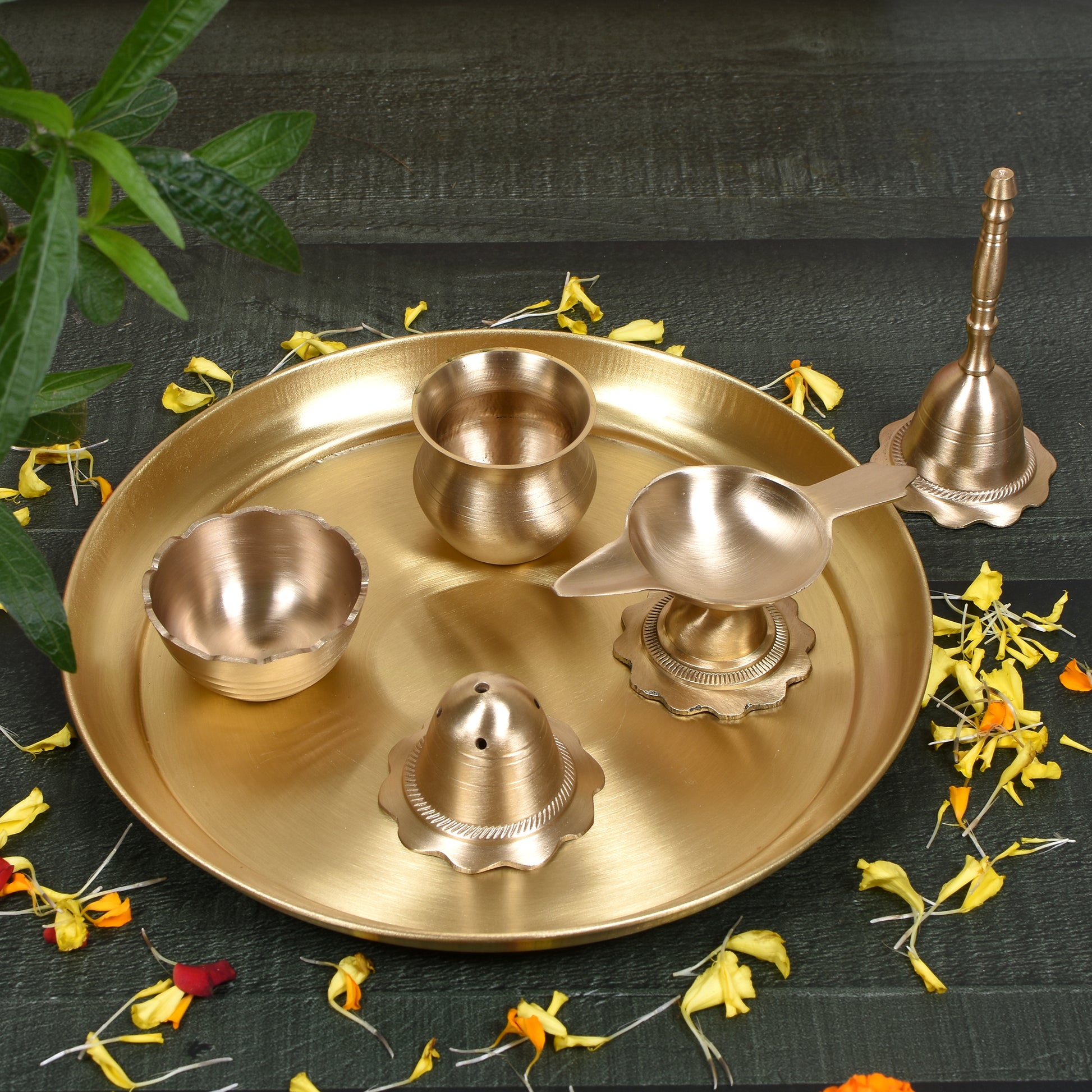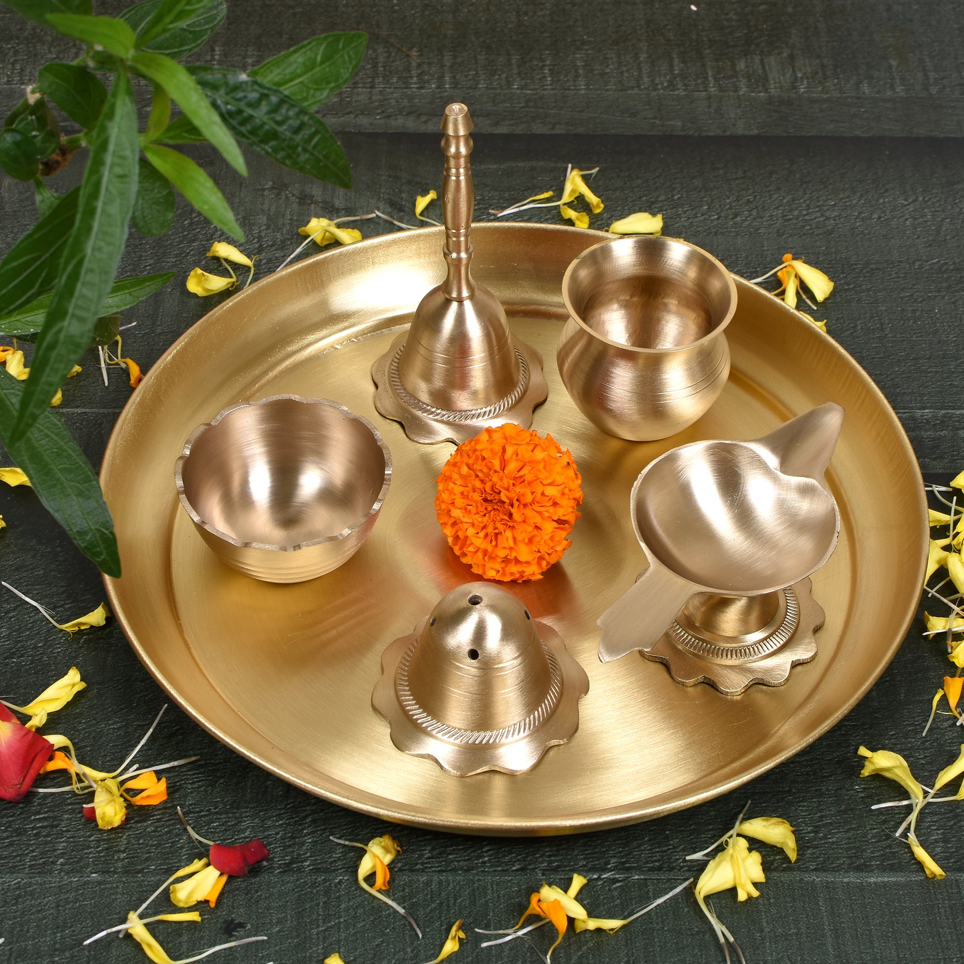 Inhance your prayers and ceremonies with our beautiful 8-inch Pooja Thali Set. This all-in-one collection provides everything you need for a complete ritual.